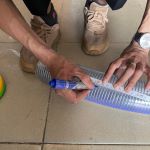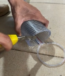 Cắt ống - Sử dụng dao rọc giấy để mở cuộn ống - Đo ống bằng thước dây với chiều dài yêu cầu +15cm - Cắt phần cao su của ống bằng dao rọc giấy sau đó cắt dây thép bằng kìm bấm Dụng cụ: Dao rọc giấy, thước dây, kim bấm, máy cắt. Yêu cầu: Cắt ống thẳng,đúng chiều dài, không bị lòi dây thép. |