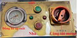 Bấm ống - Bấm nút “Siết” và nhìn vào đồng hồ áp suất (tùy từng loại ống mà ta xiết lựcphù hợp bảng 1) - Dùng tay xoay Coupling (nếu coupling xoay được thì siết chặt thêm) - Bấm nút “Nhả” và kiểm trasơ bộ coupling: + Phía trong Coupling có bị nức vở hay không, biếng dạng hay không + Phía ngoài áo bấm có ăn sau vào ống hay không + Ống có bị nức, rách không Dụng cụ: Máy bấm ống |